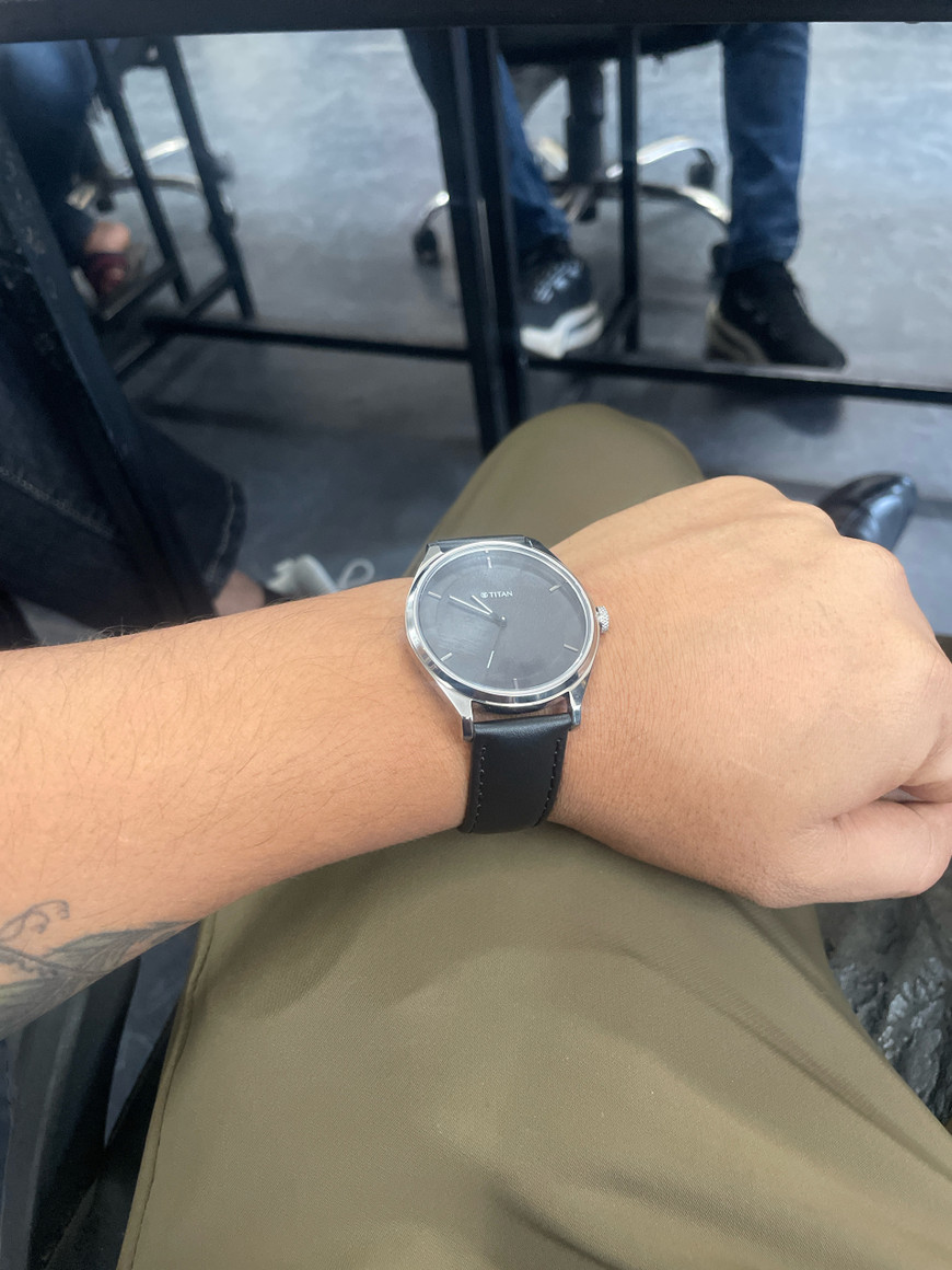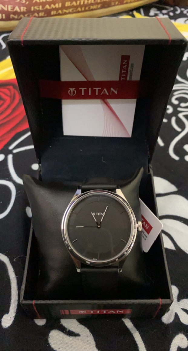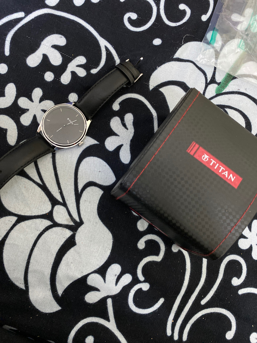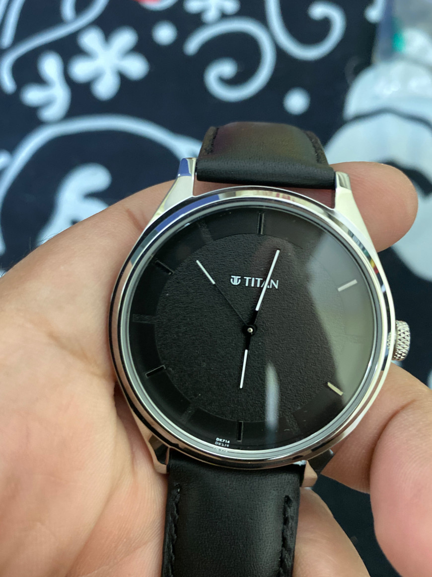 Titan Black Leather Strap Black dial watch for men and women (unisex). can use in both formal and casual functions.