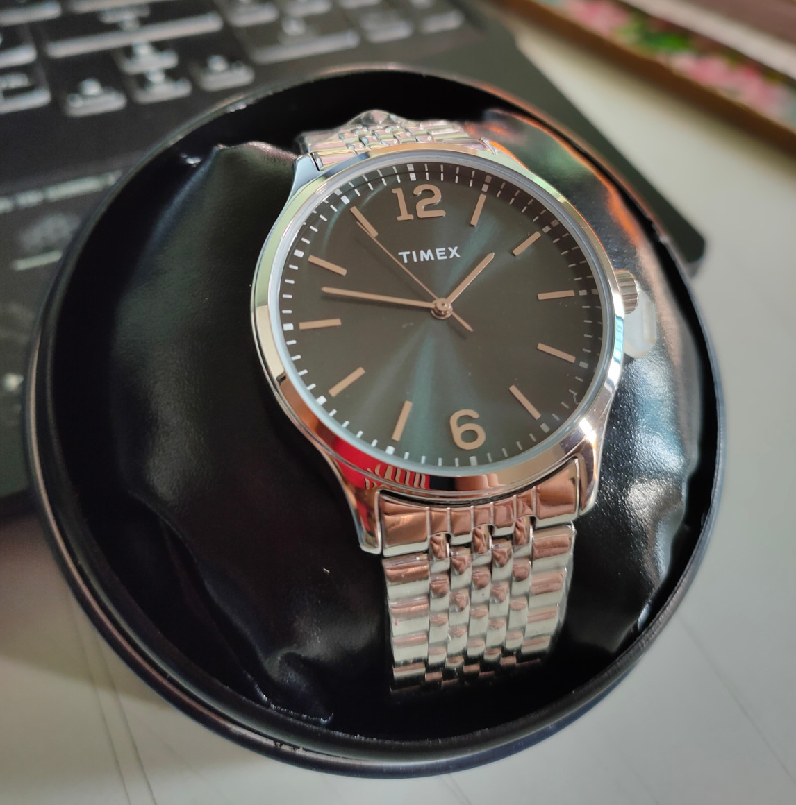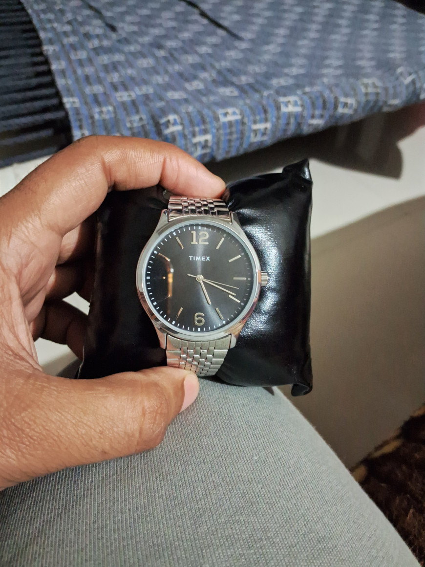 Timex Black Dial Analog Watch Unisex Male/Female silver metal Stainless Steel black dial watch