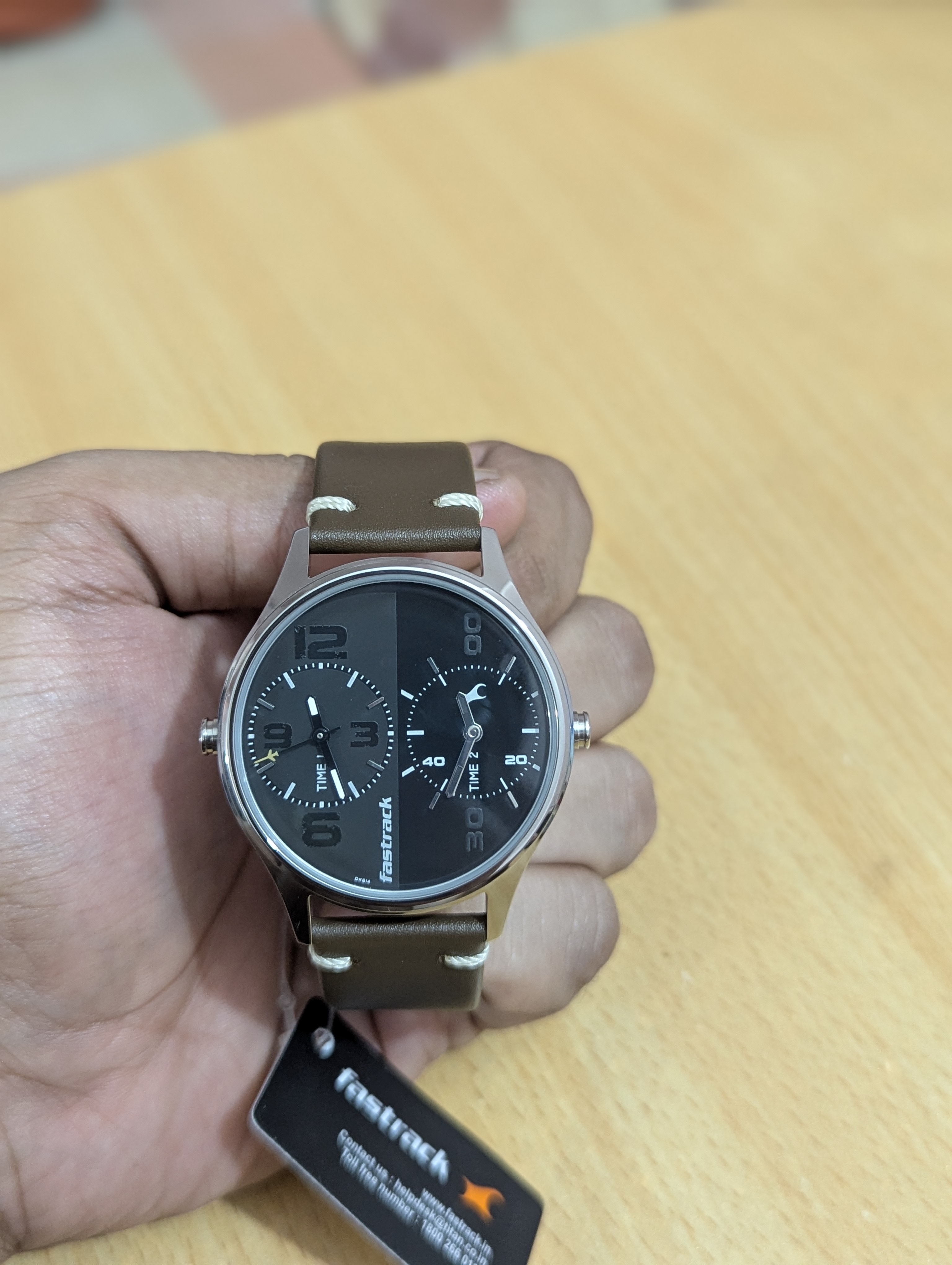Original Fastrack watch for man. 37mm real dial with 40.7mm Bazel. Genuine Leather strap with dual time functions.